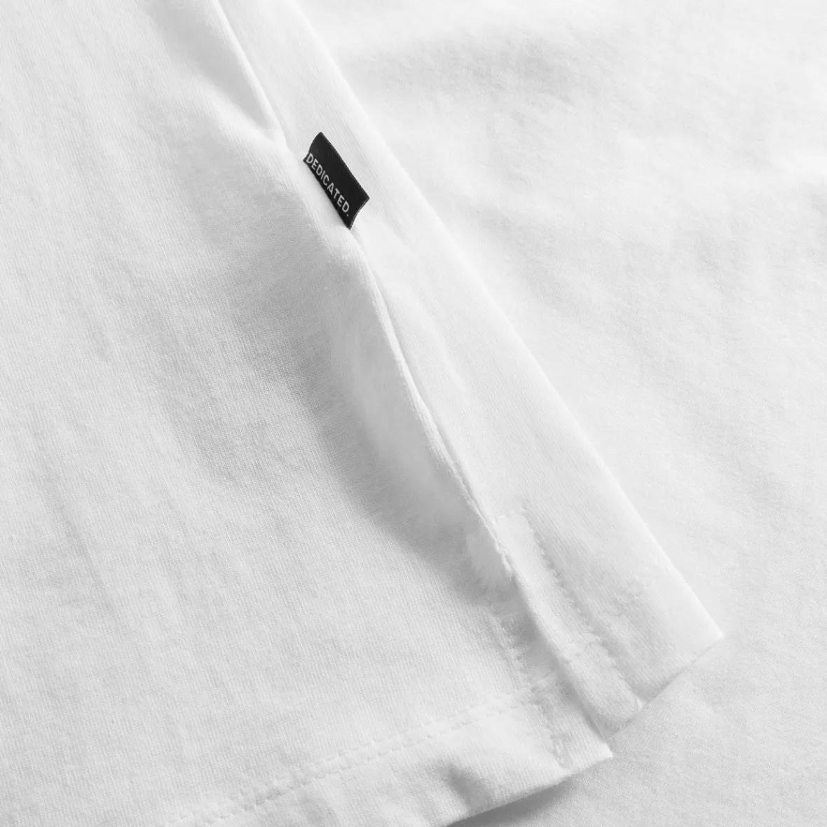 Fitted base T-shirt with short, folded sleeves. Crew neck with thin neck rib and slits at sides.- 100% organic cotton certified ROC™ and Fairtrade- Slim fit- Short, folded sleeves- Crew neck with thin neck rib- Slits at side