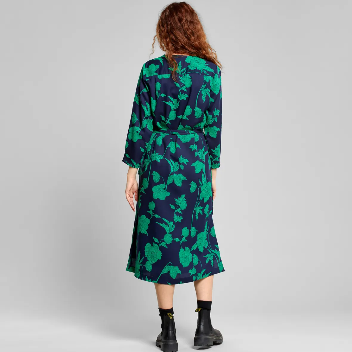 A classic wrap dress in 100% TENCEL ™ Lyocell with a long wrap-around band in the waist, three-quarter length sleeves, and deep V-neck.- Midi length- V-neck- 3⁄4 Sleeve with bottom pleat